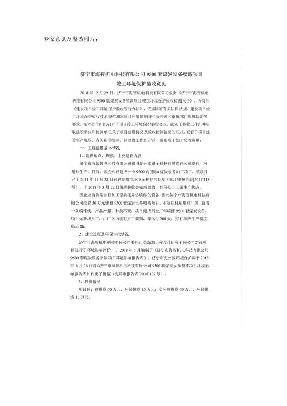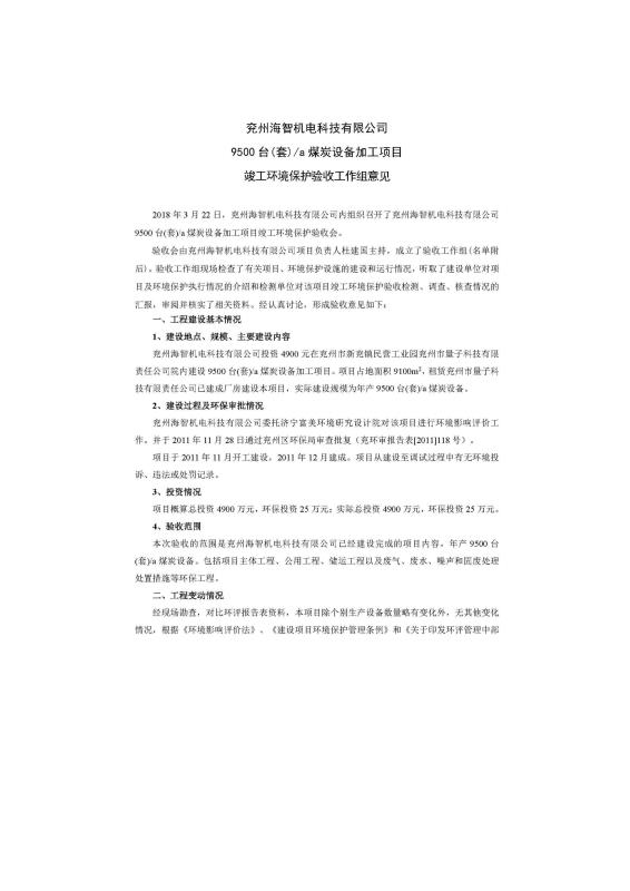 > 9500套煤炭設(shè)備噴漆項(xiàng)目竣工環(huán)境保護(hù)驗(yàn)收監(jiān)測(cè)報(bào)告