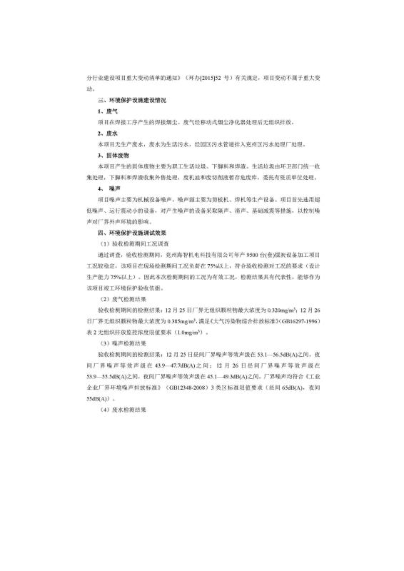 9500套煤炭設(shè)備噴漆項(xiàng)目竣工環(huán)境保護(hù)驗(yàn)收監(jiān)測(cè)報(bào)告
