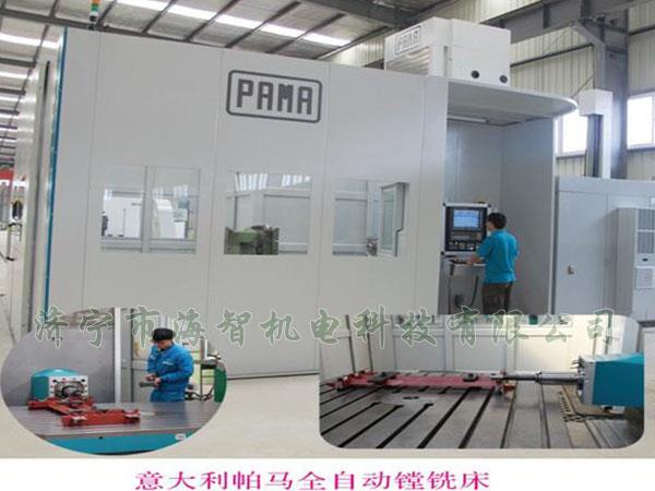 PAMA 工作臺式鏜銑加工中心,型號SPEEDMAT 3000 130 TR16,本機床為意大利PAMA品牌,鏜軸直徑φ130mm,主軸箱垂直行程2500mm,工作臺水平行程3000mm,立柱行程2300mm,鏜軸行程800mm,回轉(zhuǎn)工作臺尺寸1800 x 2200mm, 承重16t,工件最大回轉(zhuǎn)直徑3000mm,(X,Y,Z,W)軸加工進給速度0.5 ~ 15000 mm/min。